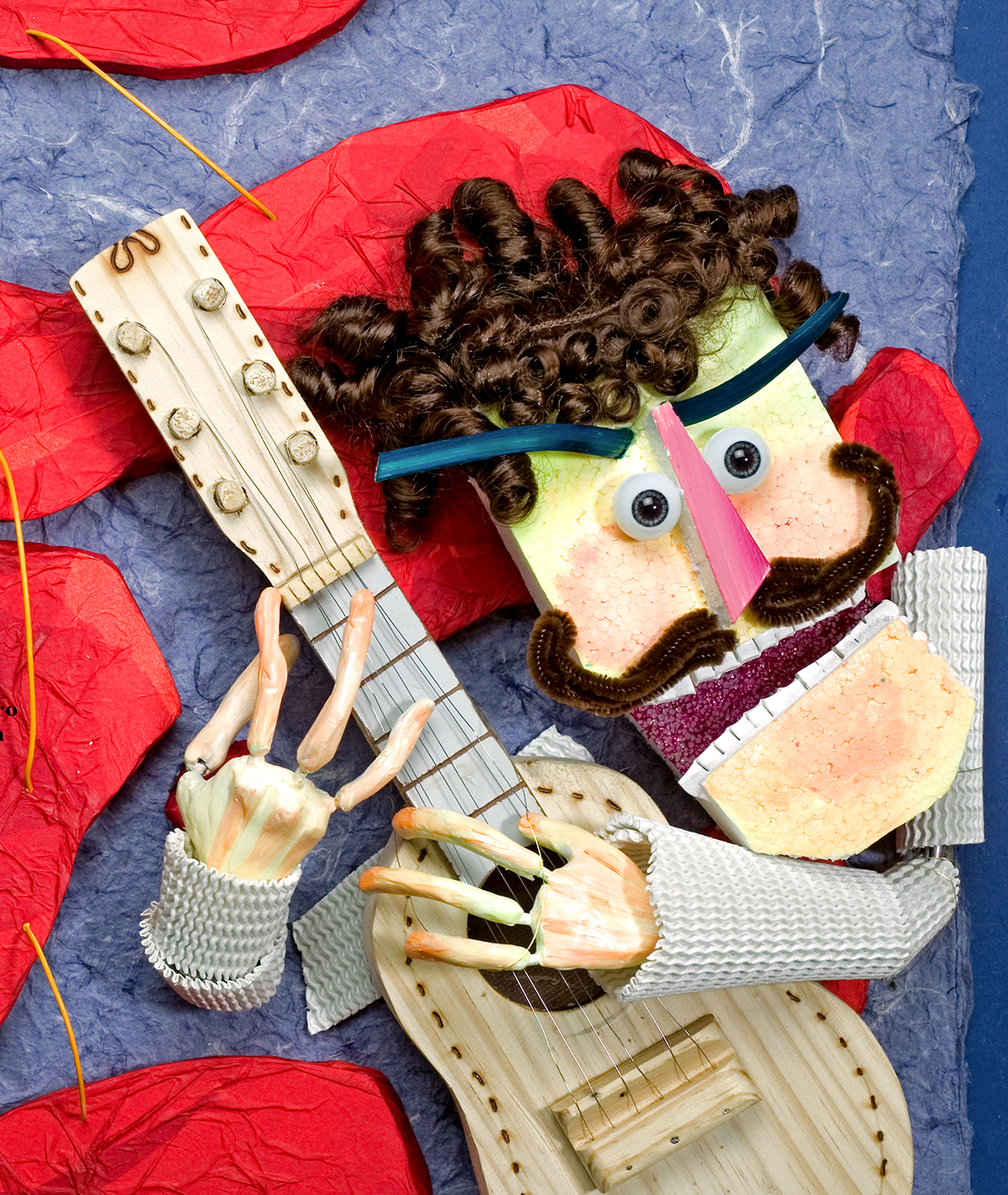 Um dos temas do livro são os estilos de música que aparecem quando uma cultura se mistura com a outra. Por exemplo: por volta do ano 700, os árabes dominaram a região onde hoje estão a Espanha e Portugal. Com certeza eles devem ter levado a música árabe para lá também, pois algum tempo depois surgiu o flamenco, que é música espanhola com tempero árabe. Pés e mãos marcam o ritmo das belíssimas melodias. O canto é dramático e expressivo, quase como um lamento. E o violão é o instrumento preferido, além das castanholas que os dançarinos e dançarinas tocam enquanto dançam. Clique na ilustração para ver os detalhes!