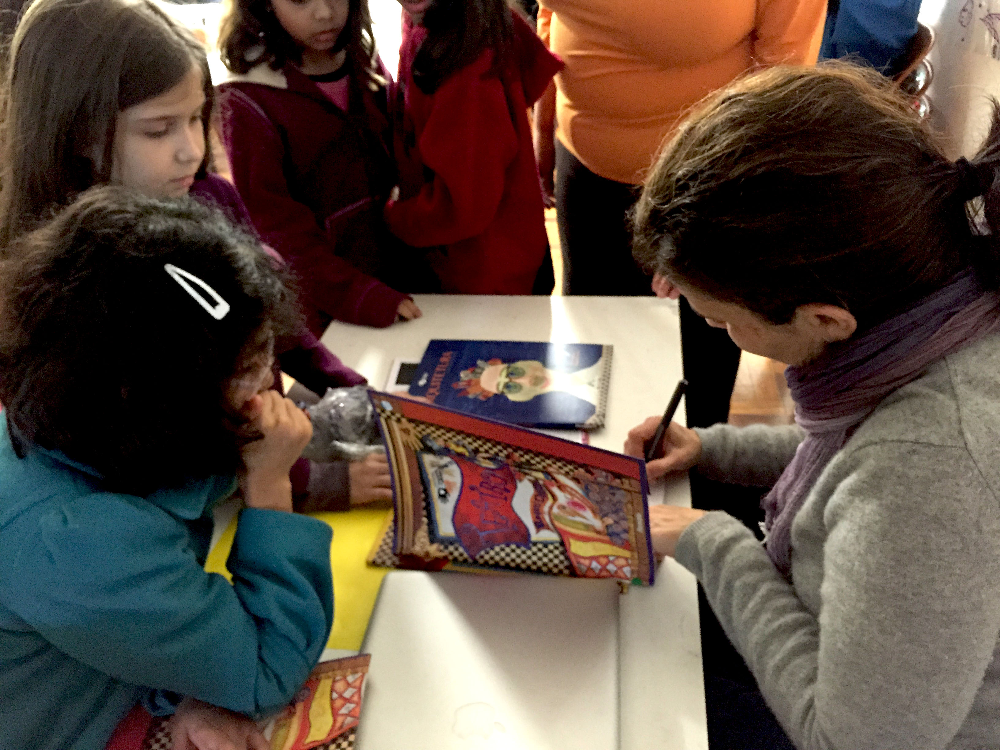 Mas voltando ao livro, o evento foi assim: como nas outras escolas paulistas, fiz uma apresentação em que conversei com as crianças sobre Arquitetura. fromValeskaMostrei várias imagens, fiz e respondi perguntas, mostrei todos os livros. O tema principal foi a arquitetura sustentável. O que achei mais interessante é que dois dos professores (a Valeska e o Fábio) estavam justamente construindo casas sustentáveis parecidas com as que eu descrevo no meu livro. Snao habitações lindas, feitas com pneus velhos, latinhas e garrafas. Como eles tinham a experiência direta fazendo este tipo de construção, eles puderam completar a minha apresentação contando sua própria experiência. Foi muito legal porque as crianças não conheciam ainda essa outra “faceta” dos professores! Algumas crianças compraram o livro com antecedência, e no final da apresentação conversei com elas e autografei vários livros.