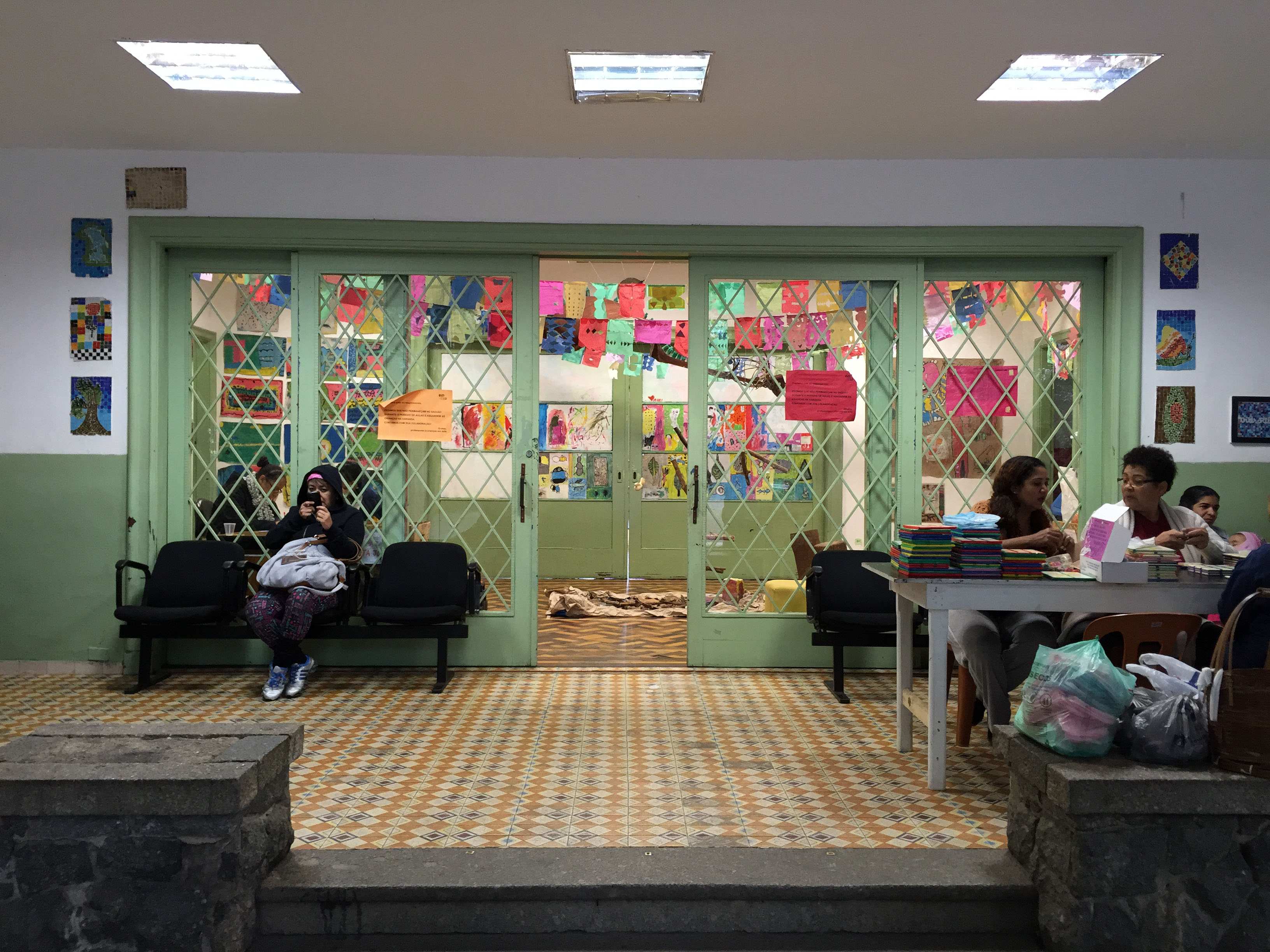 A EMIA é uma escola de artes para crianças de 5 a 13 anos, que fica no antigo Parque da Conceição (atual parque Lina e Paulo Raia), em São Paulo. O parque é lindo, com àrvores antigas e muito verde. Já de cara meu coração bateu forte quando cheguei na bela casa antiga, com seu chão de taco de madeira e enormes janelas. Parecia até que casa me reconheceu e sorriu para mim. A porta de entrada parecia a mesma de 20 anos atrás, com as mães sentadas por ali esperando pelos filhos batendo papo, lendo ou as vezes fazendo artesanato…. e hoje em dia, também checando mensagens em seus celulares, coisa que ainda não acontecia nos velhos tempos.