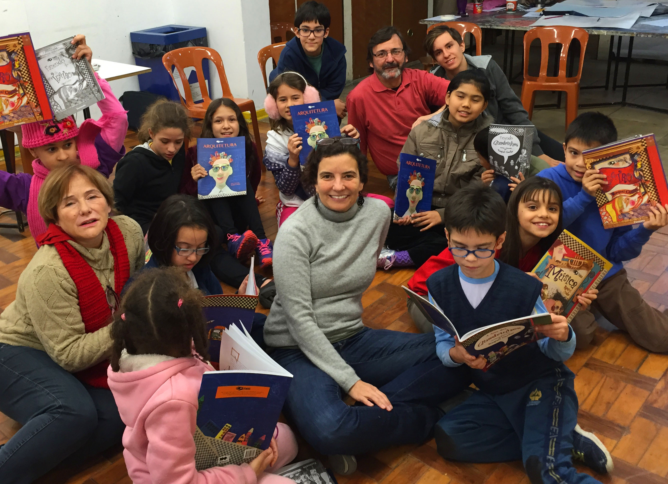Um dos pontos altos da minha visita a São Paulo foi a visita a EMIA – Escola Municipal de Iniciação Artística da Prefeitura de São Paulo – para lançar o livro “Arquitetura – a arte de criar espaços”.  Uma visita longa – dois dias inteiros! Foi um prazer voltar a essa maravilhosa escola de artes, que foi quase uma casa para mim. Conheci a EMIA primeiro como aluna do curso de formação de professores (meados dos anos 80), e depois como professora de música e violino, fazendo parte de uma equipe formidável de mais ou menos 30 artistas que se tornaram também grandes amigos. Na verdade, a idéia de escrever e ilustrar a coleção “No Caminho das Artes” surgiu a partir da minha experência como professora da EMIA. E por isso foi tão especial voltar lá para falar sobre os meus livros para essa nova geração de crianças.